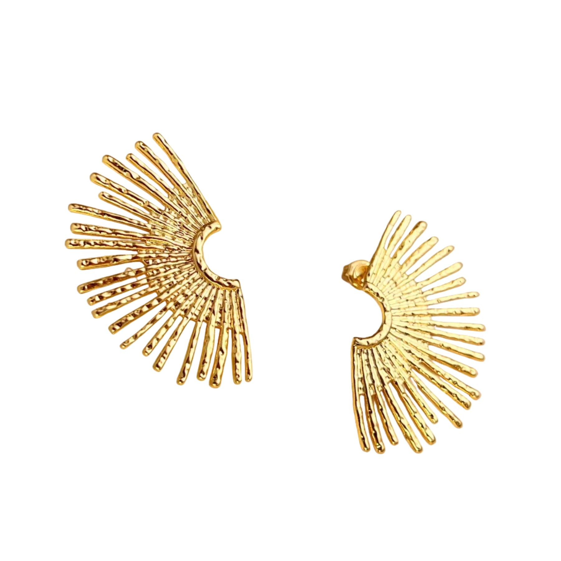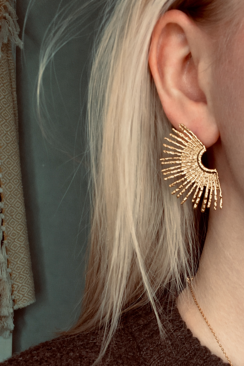 Laat je stijl stralen met deze oorbellen in zonnestraalvorm. De oorbellen geven elke outfit een warme, zonnige touch. Lichtgewicht, waterbestendig en hypoallergeen, waardoor ze perfect zijn voor dagelijks gebruik en zorgen voor een vrouwelijke en elegante uitstraling.