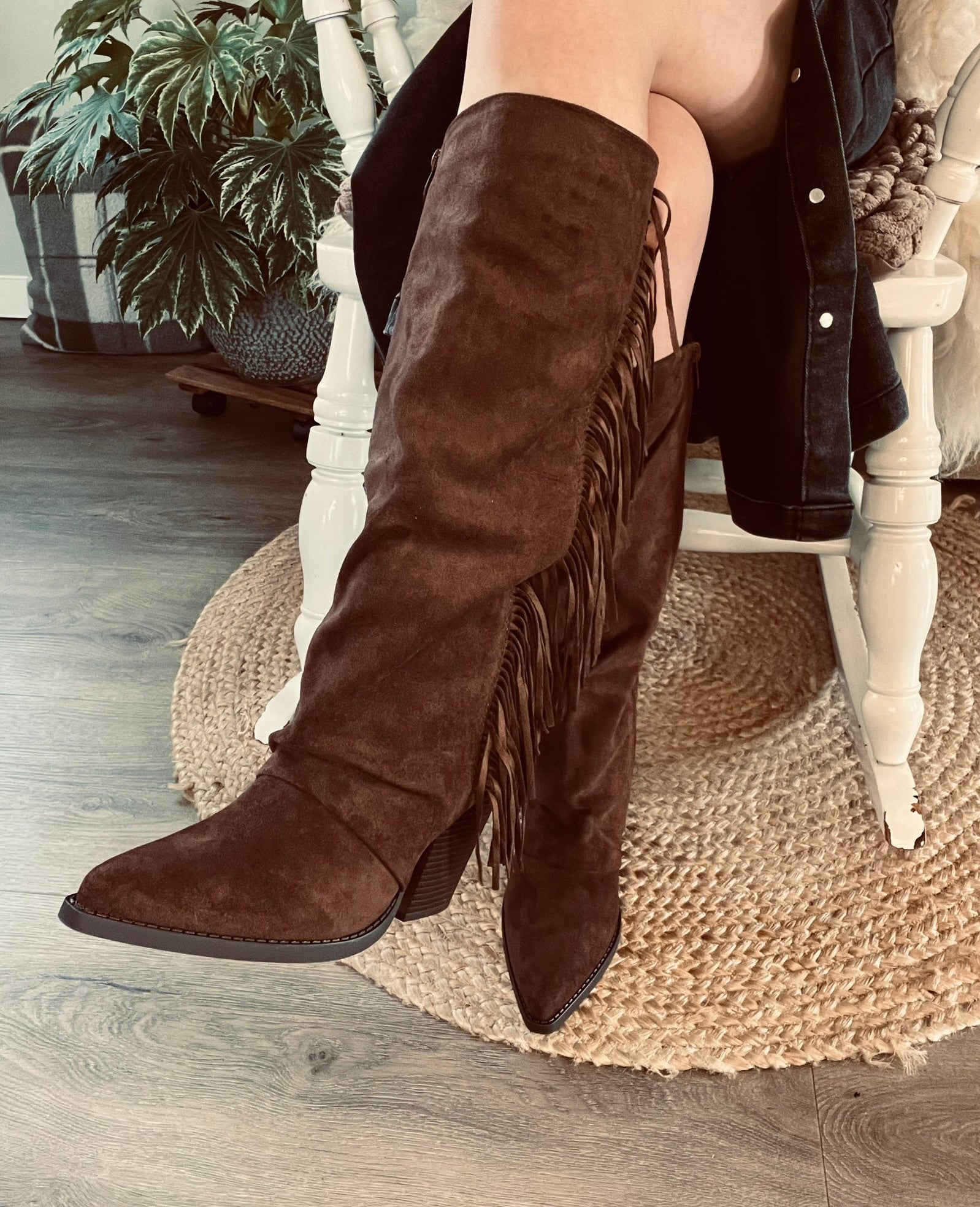 Deze boots zijn uitgevoerd in een zachte suède stof en krijgen een speelse, western uitstraling door de franjes aan de zijkant. Dit subtiele detail geeft het model wat extra karakter en maakt ze een echte eyecatcher onder elke outfit. De spitse neus zorgt voor een elegante, vrouwelijke uitstraling, terwijl de ritssluiting aan de zijkant het aan- en uittrekken gemakkelijk maakt. De pasvorm valt normaal en sluit comfortabel aan. De schachthoogte is circa 35,5cm lang & de hak is circa 9cm.
